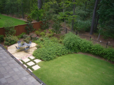 view of a back yard landscape taken by a Mississippi new home inspector while inspecting the roof by walking on the roof.